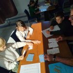 - Les élèves relisent les programmes affichés en mairie avant d’aller voter.