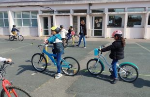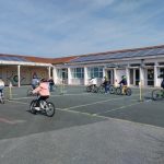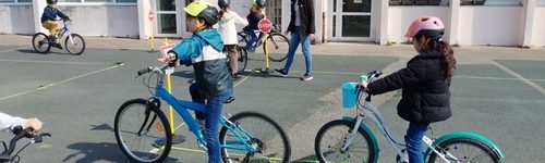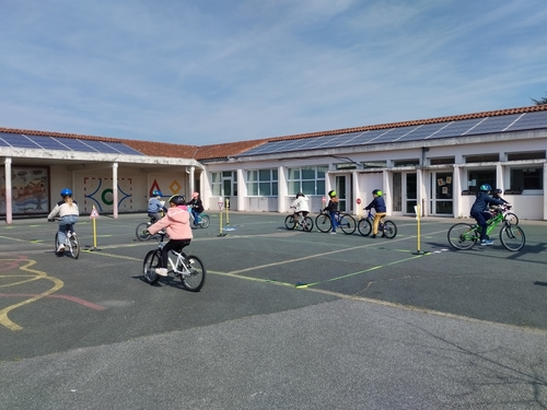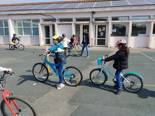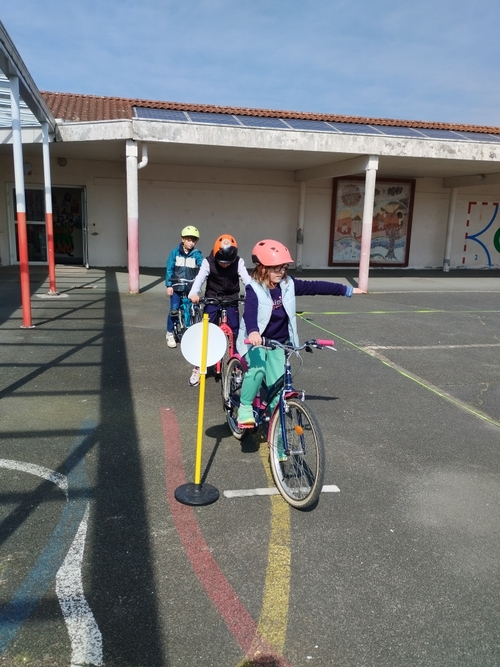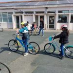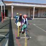 En mars, les CE2 CM1 et CM2 ont réalisé leur troisième séance de prévention routière avec Julie. Ils devaient conduire leur vélo sur une piste avec des intersections et des priorités.