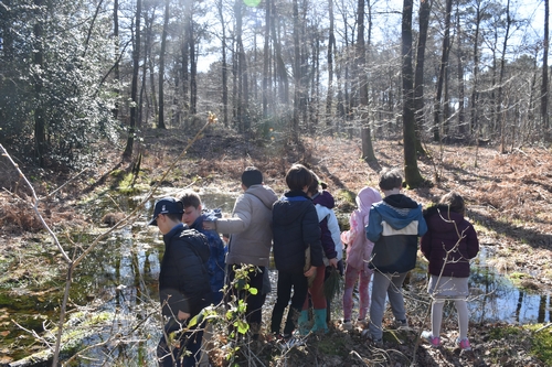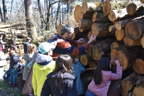 Jacky, l’animateur nature, a commencé la visite par une balade sur les sentiers, pendant que les élèves écoutaient ses explications sur les éléments rencontrés (arbres, animaux). Ils ont découvert Gaston, le plus vieil arbre de la forêt.