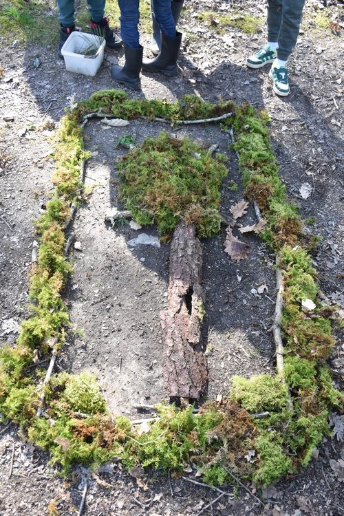 Jacky leur a ensuite lancé un défi : ramasser des éléments naturels (brindilles, glands, feuilles, fleurs…) afin de constituer, au sol, quatre magnifiques arbres.