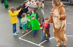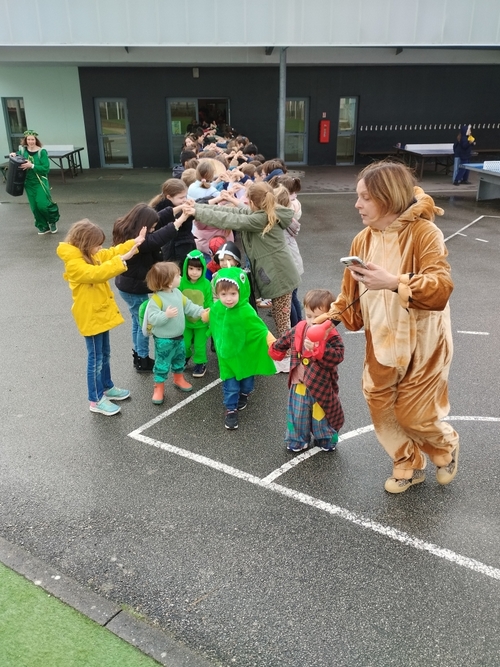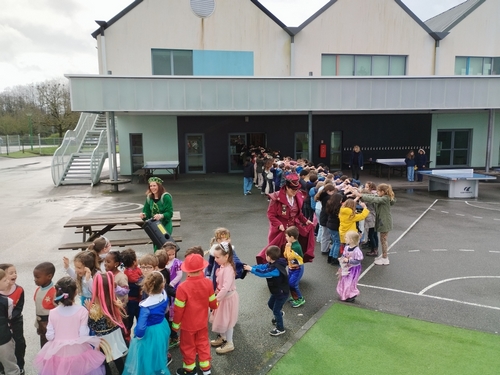 A l’heure de la récréation, les quatre classes ont effectué un grand défilé dans la cour de l’école élémentaire ainsi que dans les classes. Les grands ont chaudement applaudi !